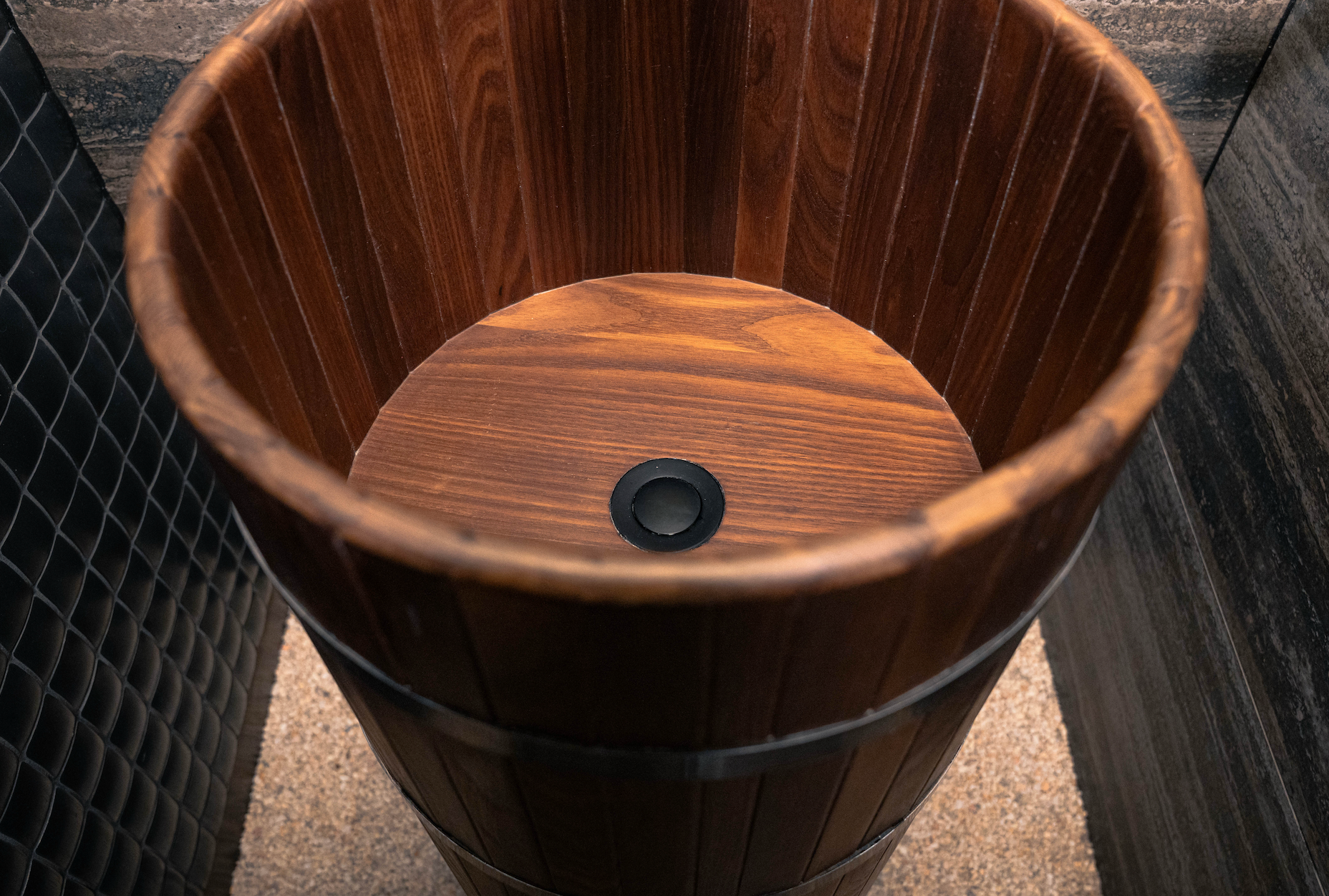 Adorn your bathroom with this basin's rustic elegance. Our unique pedestal basin is handcrafted with high quality blackened ash wood and slatted into a sleek curve. Perfect for all variety of spaces.