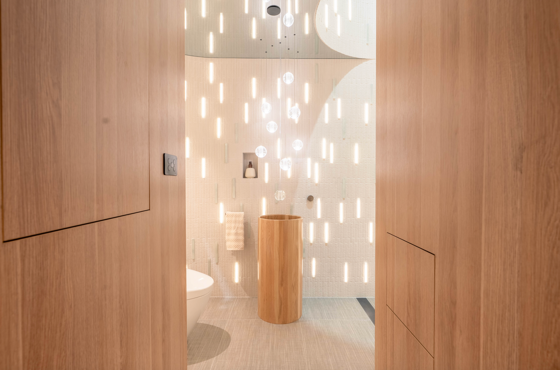 Adorn your bathroom with this basin's rustic elegance. Our unique pedestal basin is handcrafted with high quality oak wood and slatted into a sleek curve. Perfect for all variety of spaces.