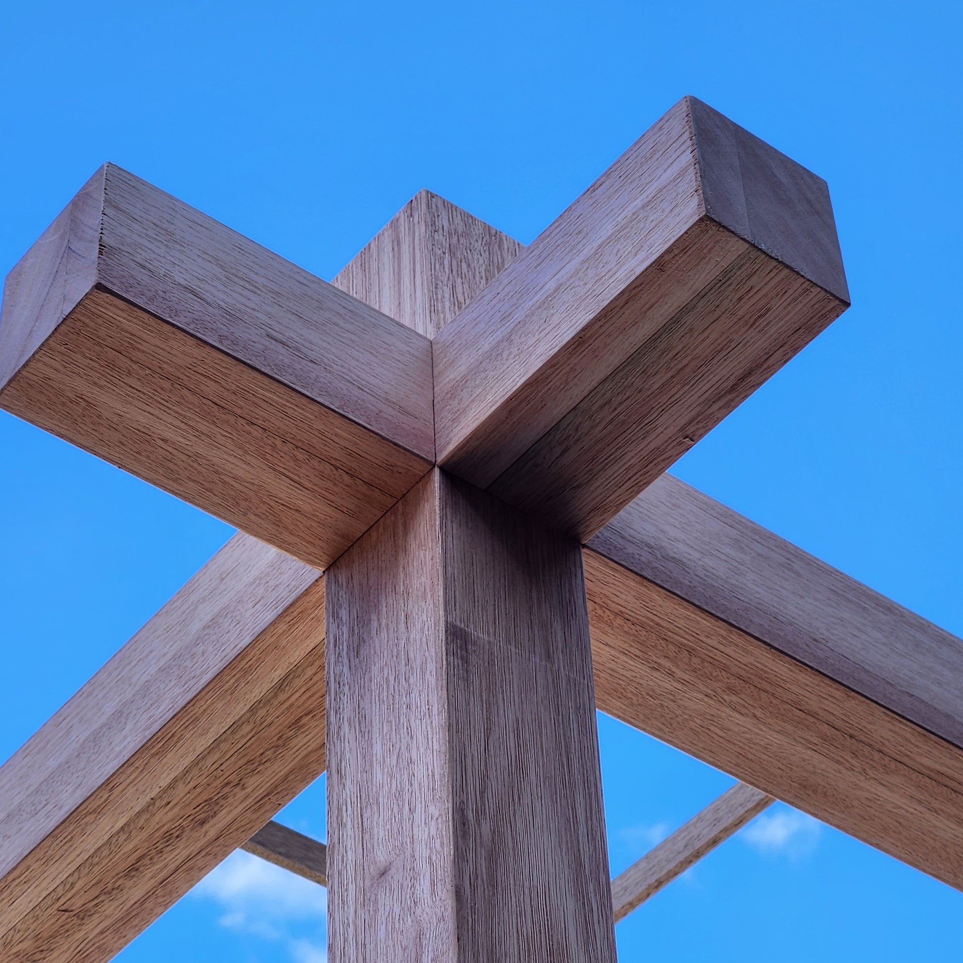 The Chuppah symbolising the home a couple will build, this artistic interpretation is the four timber legs to hold a cloth or sheet canopy. Handcrafted with high-quality ... wood. The installation process allows this structure to be temporary, if preferred.